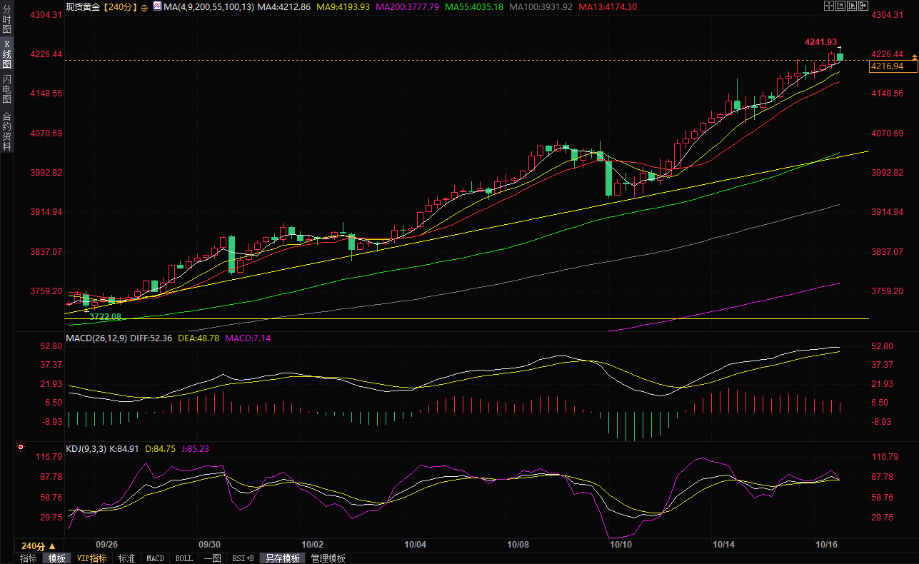 现货黄金在周四(10月16日)亚洲时段连续第五天延续上涨趋势,并创下新纪录高点至4241.93美元/盎司,因全球焦虑情绪持续。投资者对美国政府停摆、国际贸易战以及地缘政治紧张局势升级带来的经济风险感到担忧,这继续推动资金流向传统的避险资产黄金。此外,美联储(Fed)的鸽派预期成为支撑无收益黄金需求的另一因素。